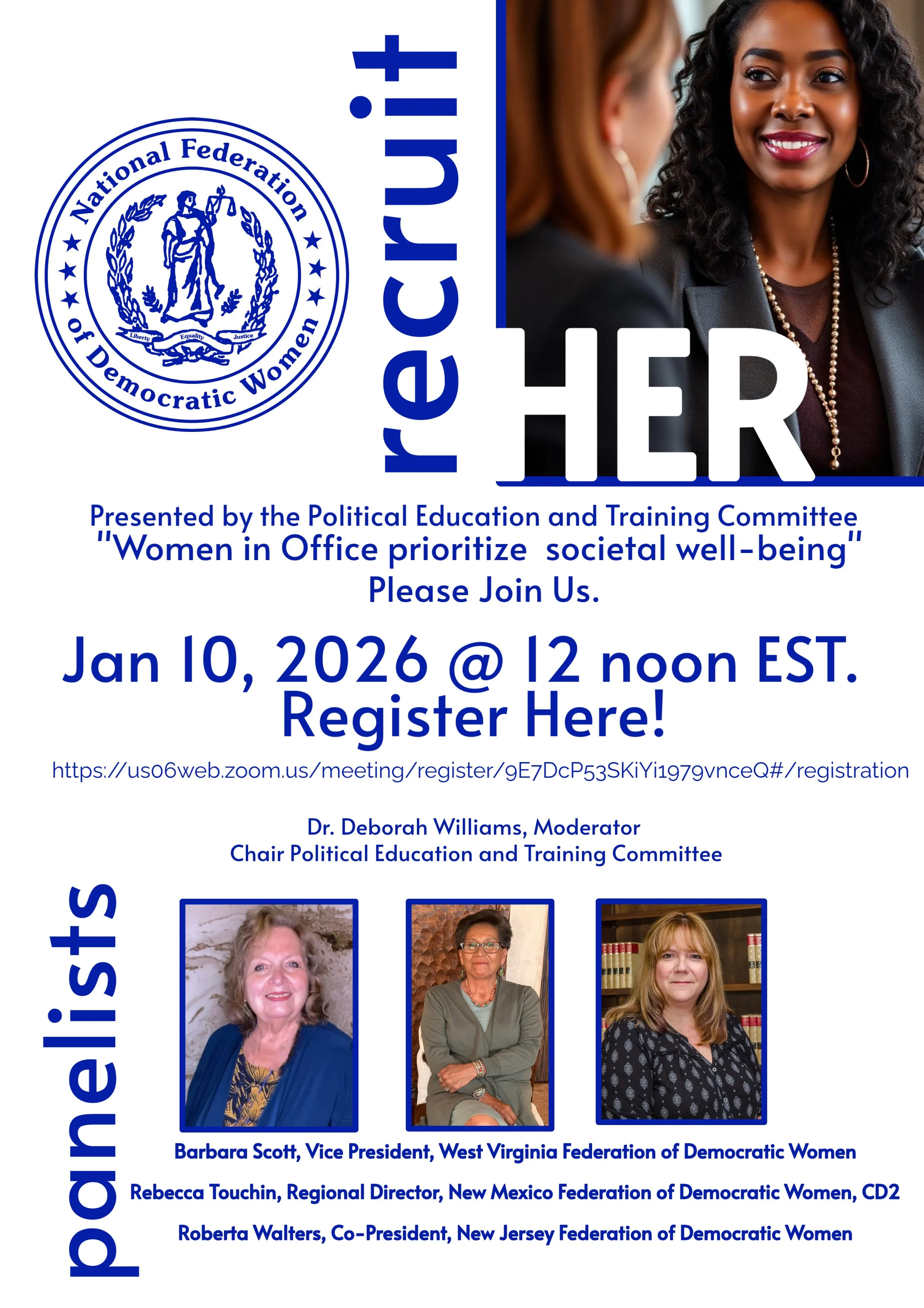 The event will be held on Zoom, and registration is required to attend. Members and guests alike are encouraged to join us for this engaging conversation and connection with fellow Democratic women from across the country.