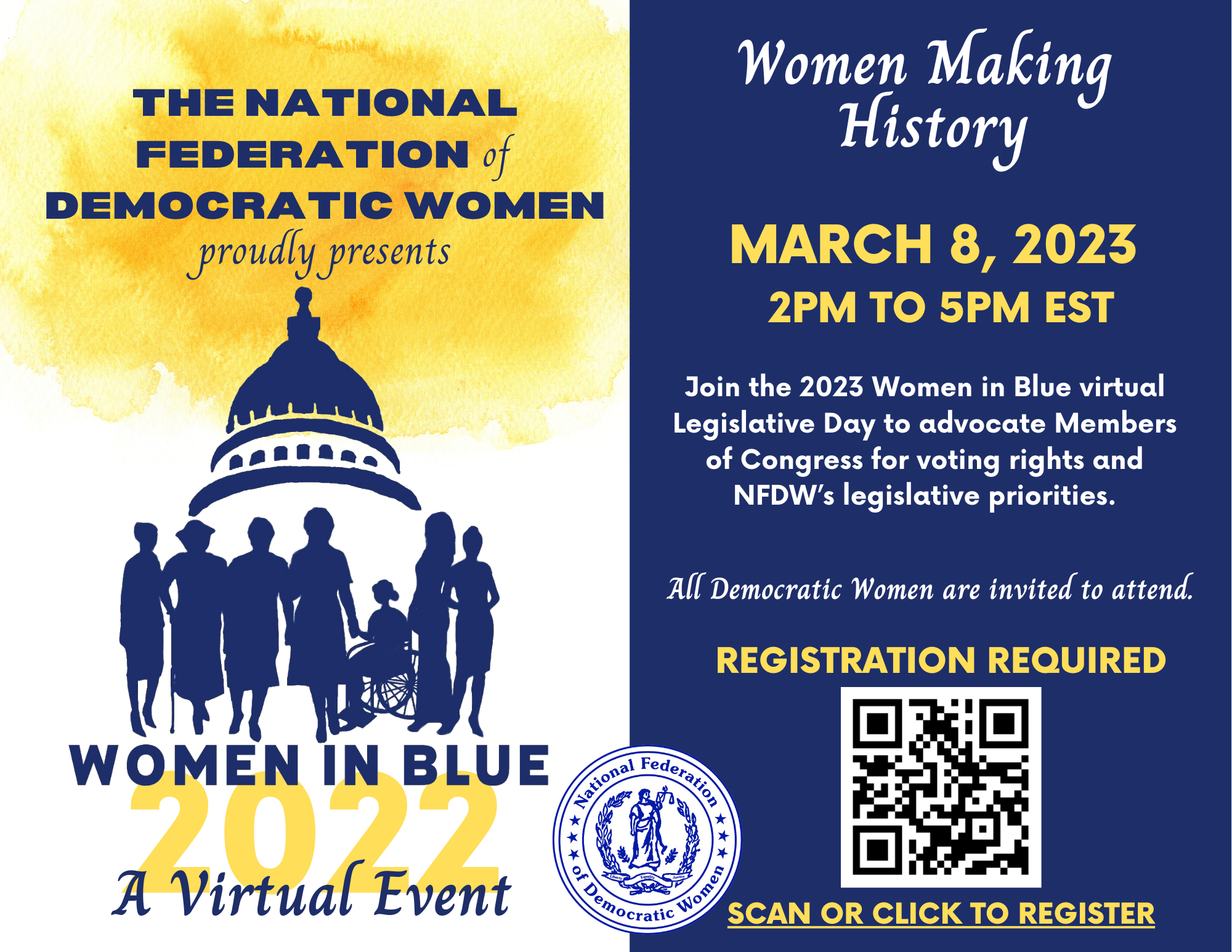 This year’s NFDW Women in Blue’s theme was “When Women Vote - Democrats Win!” It featured all-stars from Congress and other notable guests. Our focus was on voting rights and protecting people’s ability to vote from sea to shining sea.